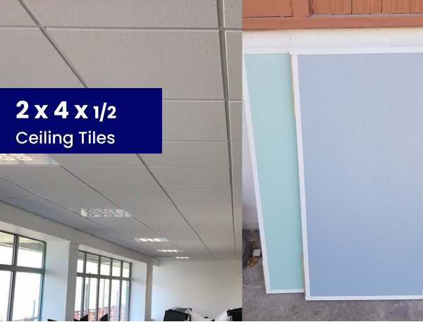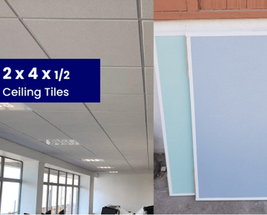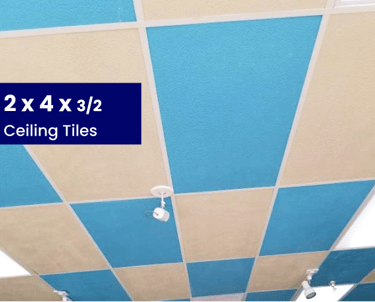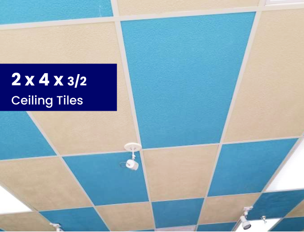 Ceiling foam tiles are available in 2'x4' and 2'x2' panels and thickness of ½" - " and 1" for use inside the building ceiling is approved for use in residential and commercial structures.