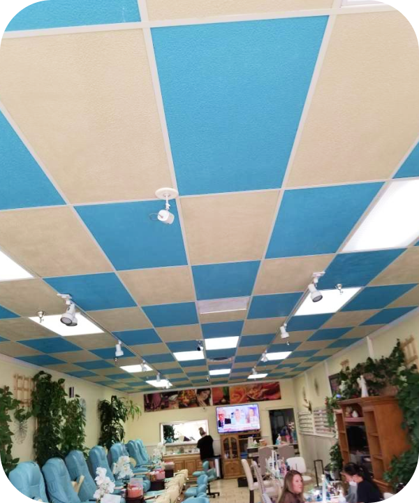 Designed to elevate your ceilings with stylish patterns and colors. Ideal for beauty salons, offices, and commercial interiors.