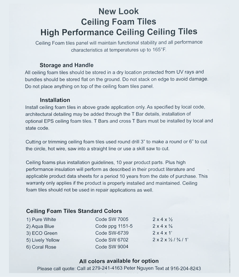 Reach out for inquiries about our lightweight, moisture-resistant foam ceiling tiles. We're here to help!